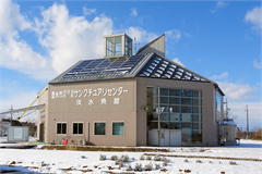 伊豆沼・内沼の自然について楽しく学ぶことができる施設。建物の屋根は白鳥が羽を広げたような形です。