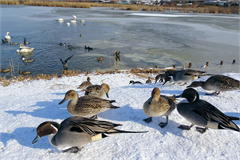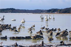 ハクチョウやガンなどの渡り鳥の飛来地として知られ、ラムサール条約の登録湿地にもなっています。